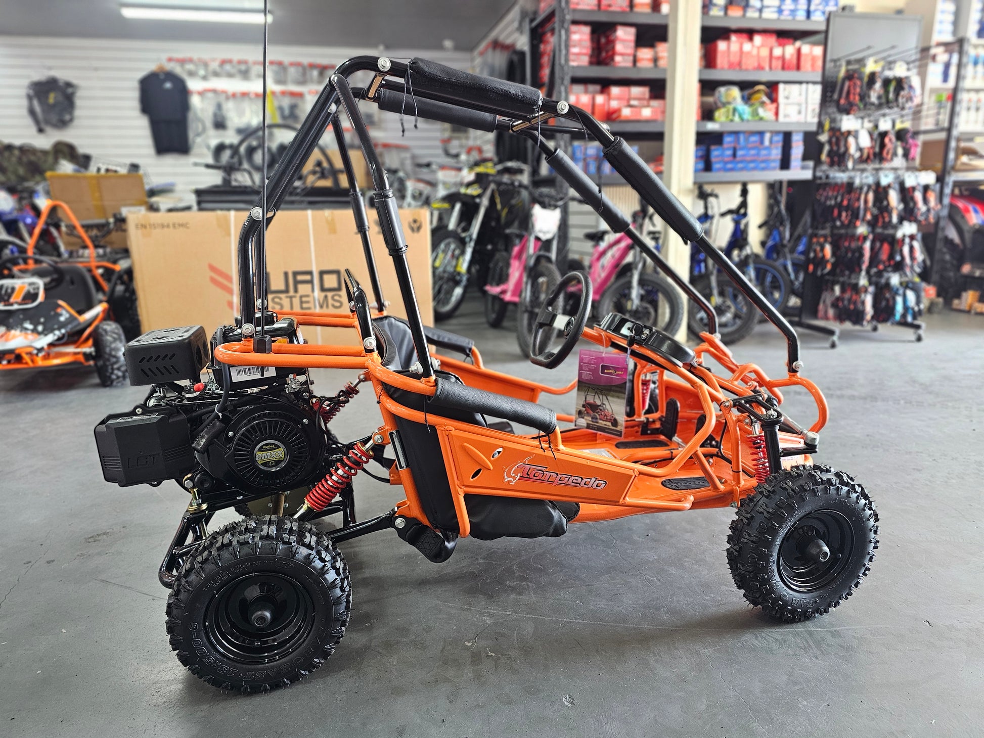 The Hammerhead Torpedo might be our smallest vehicle but is enormous, in terms of fun, for the kids. The Torpedo comes equipped with a 208cc (6.5HP) LCT pull-start engine. The throttle governor and adjustable pedals feature make the Torpedo the perfect choice as an entry-level go kart for ages 6+.